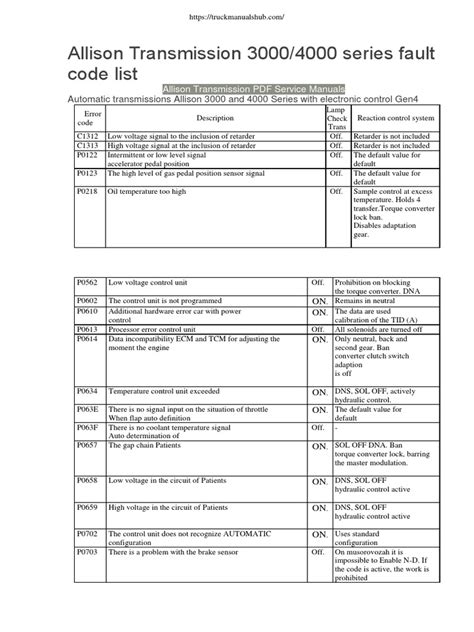 Download allison automatic transmission fault codes pdf Doc